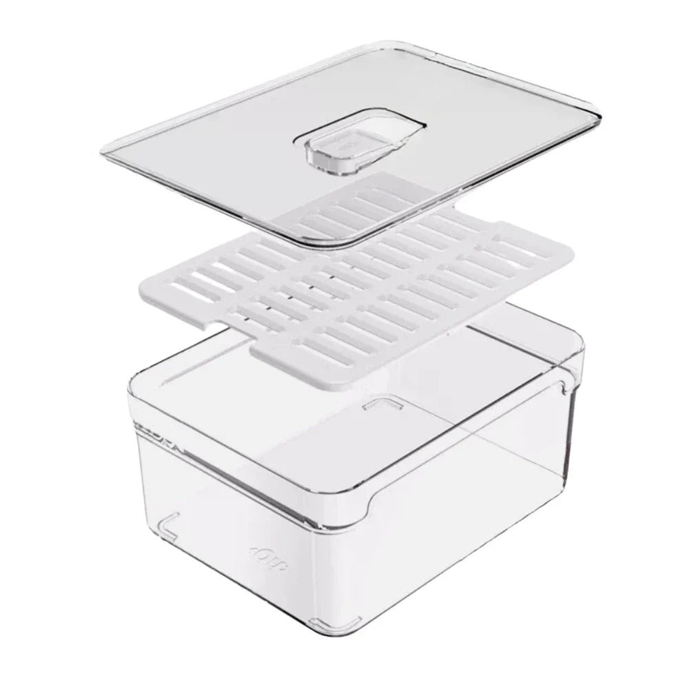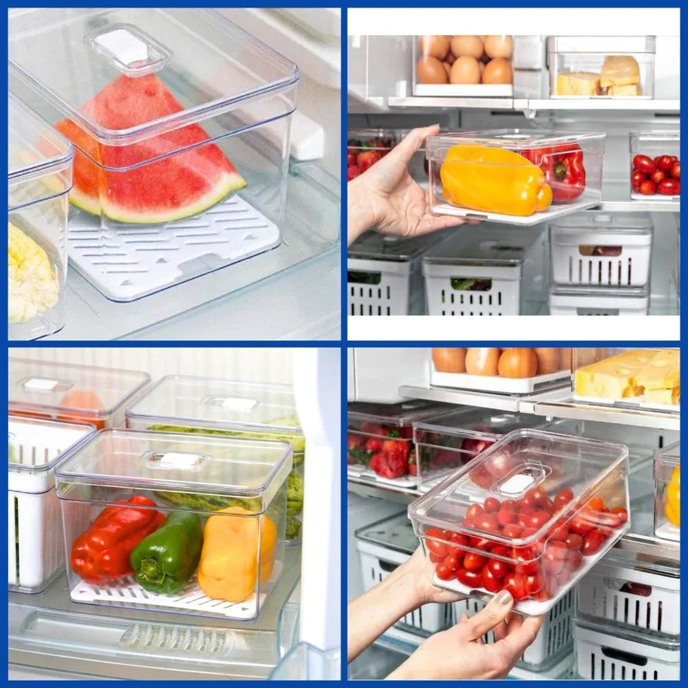 Este conjunto é perfeito para manter seus alimentos frescos e organizados. Cada organizador possui uma cesta removível que facilita a limpeza e o manuseio dos itens armazenados. Além disso, contam com um respiradouro que permite a circulação de ar, garantindo a melhor conservação dos alimentos.
