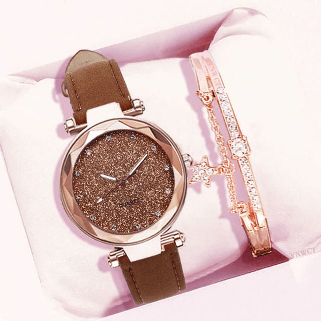 O Relógio Quartzo Romantic Sky é extremamente de altíssima qualidade, super luxuoso e com um bracelete maravilhoso de brinde. A pulseira de couro não só é confortável de usar, mas muito estilosa e conta com uma variedade de cores para escolher. Adequado para qualquer ocasião e combina com qualquer roupa!