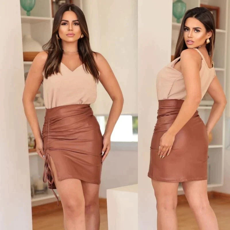 - Drapeado Elegante: O design drapeado confere um toque de sofisticação à saia, proporcionando movimento e fluidez ao caminhar.